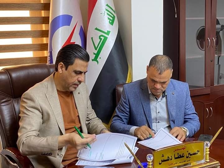 المهندس حيدر سهر الحسيناوي مدير عام شركة آور خلال توقيع عقد مع الشركة العامة لتوزيع كهرباء بغداد