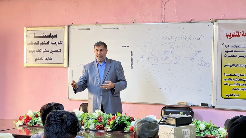 الدورة التي حاضر فيها المشاور القانوني الأقدم نبيل الساري تناولت عدة محاور لتعريف الموظف بالالتزامات القانونية علية والواجبات المناطة بوظيفته بالإضافة للحماية القانونية للمنتسب .