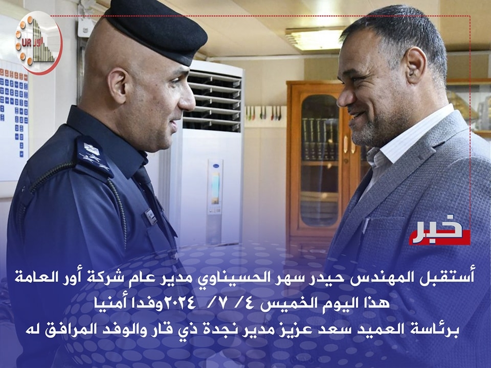 أستقبل المهندس حيدر سهر الحسيناوي مدير عام شركة أور العامة هذا اليوم الخميس ٢٠٢٤/٧/٤وفدا أمنيا برئاس...