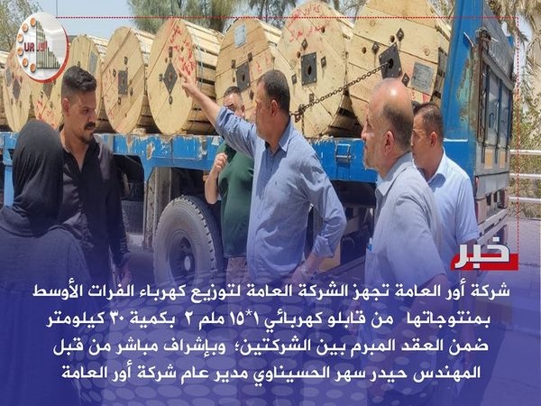 شركة أور العامة تجهز الشركة العامة لتوزيع كهرباء الفرات الأوسط بمنتوجاتها من القابلو الكهربائي 1*150...